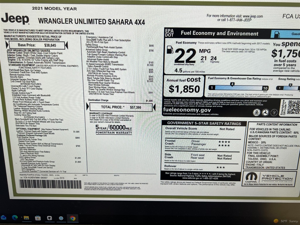 2021 JEEP WRANGLER Unlimited Sahara For Sale